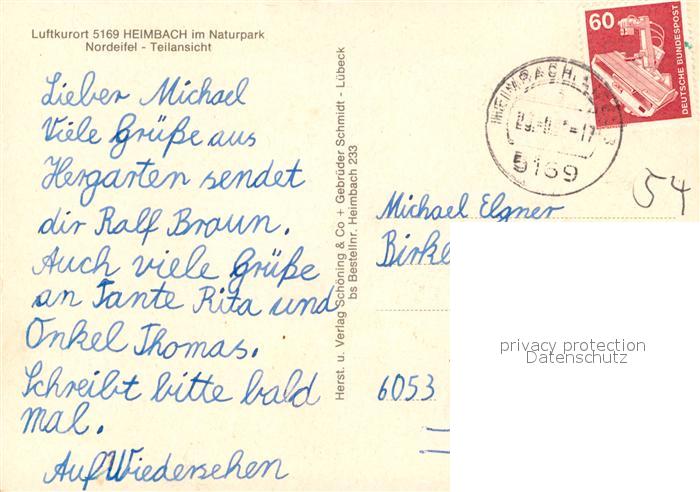73179371 alte Postkarte Heimbach Eifel Panorama postalisch gelaufen Erhaltung siehe scans [KathaD81] KatCode: 11110005358012