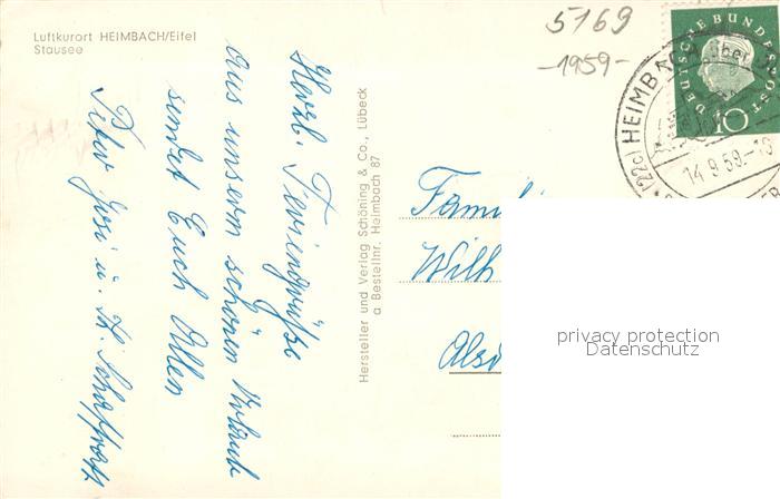 73691739 alte Postkarte Heimbach Eifel Panorama Stausee Sperrmauer postalisch gelaufen Erhaltung siehe scans [FriedD77] KatCode: 11110005358012