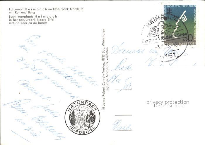 72223234 alte Postkarte Heimbach Eifel Rur Burg postalisch gelaufen Erhaltung siehe scans KatCode: 11110005358012