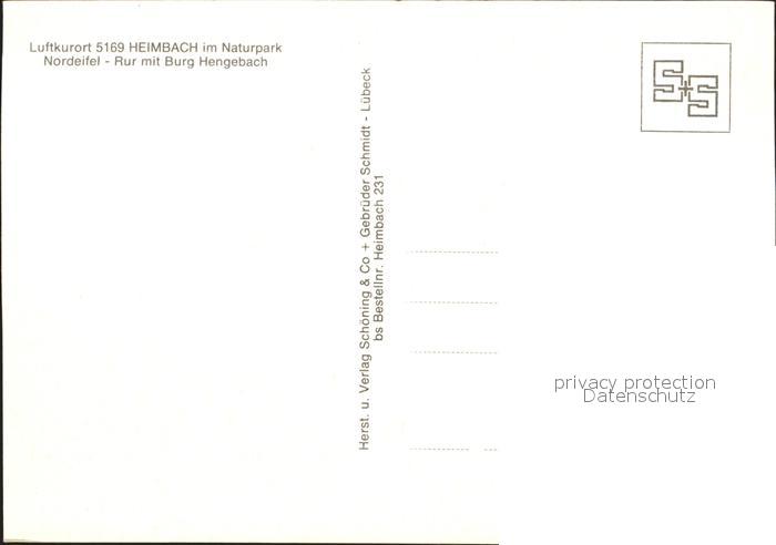 72303722 Heimbach Eifel Rur Burg Hengebach postalisch nicht gelaufen Erhaltung siehe scans KatCode: 11110005358012