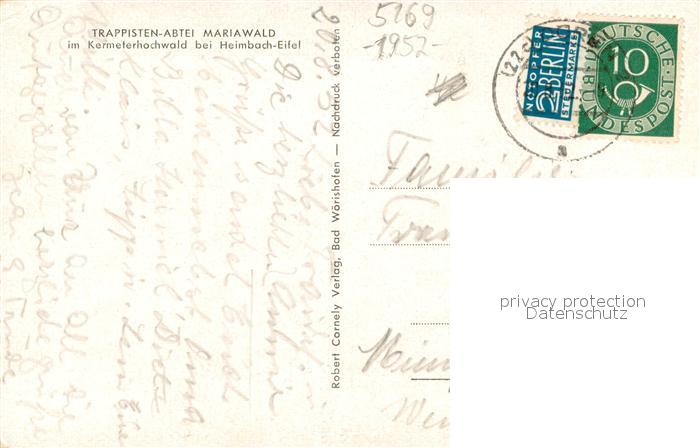 73691506 alte Postkarte Heimbach Eifel Rursee Schwammenauel Blick von der Simonsley postalisch gelaufen Erhaltung siehe scans [FriedD77] KatCode: 11110005358012