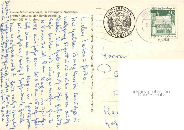 72888291 alte Postkarte Heimbach Eifel Rursee Schwammenauel Naturpark Nordeifel Stausee postalisch gelaufen Erhaltung siehe scans [FriedD77] KatCode: 11110005358012