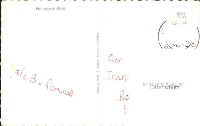 72430863 alte Postkarte Heimbach Eifel Schloss postalisch gelaufen Erhaltung siehe scans KatCode: 11110005358012