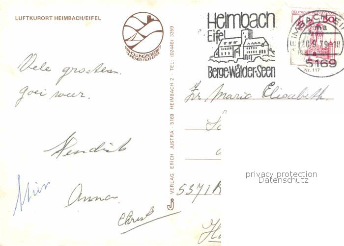 72845297 alte Postkarte Heimbach Eifel Schloss postalisch gelaufen Erhaltung siehe scans [NatalD47] KatCode: 11110005358012