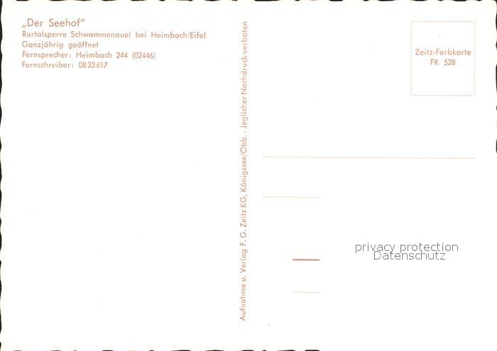 72303900 Heimbach Eifel Seehof postalisch nicht gelaufen Erhaltung siehe scans KatCode: 11110005358012