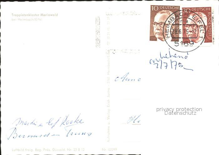 72427213 alte Postkarte Heimbach Eifel Trappistenkloster Mariawald postalisch gelaufen Erhaltung siehe scans KatCode: 11110005358012