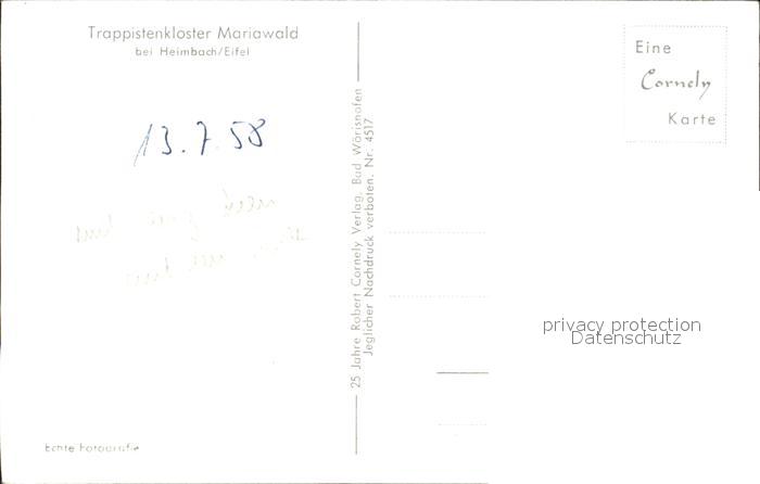 72261462 Heimbach Eifel Trappistenkloster Mariawald postalisch nicht gelaufen Erhaltung siehe scans KatCode: 11110005358012