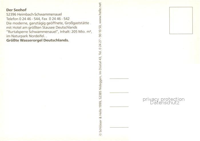 73655475 Heimbach Schwammenauel Der Seehof am Rursee Terrasse Veranstaltungsraum Aufenthaltsraum postalisch nicht gelaufen Erhaltung siehe scans [WerneD78] KatCode: 11110005358012