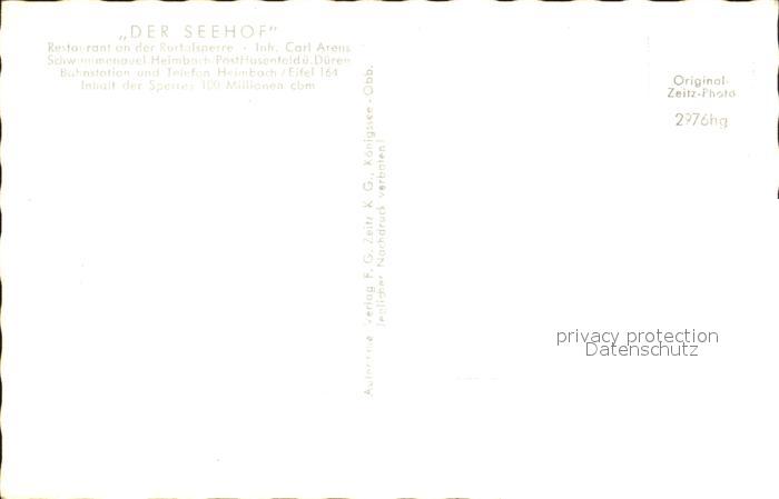 72075253 Heimbach Schwammenauel Der Seehof Restaurant Rurtalsperre postalisch nicht gelaufen Erhaltung siehe scans KatCode: 11110005358012