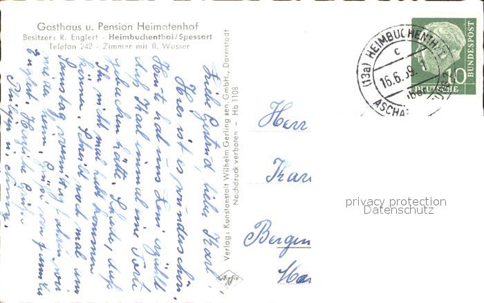 72097190 alte Postkarte Heimbuchenthal Gasthaus Heimatenhof postalisch gelaufen Erhaltung siehe scans KatCode: 11110009671127