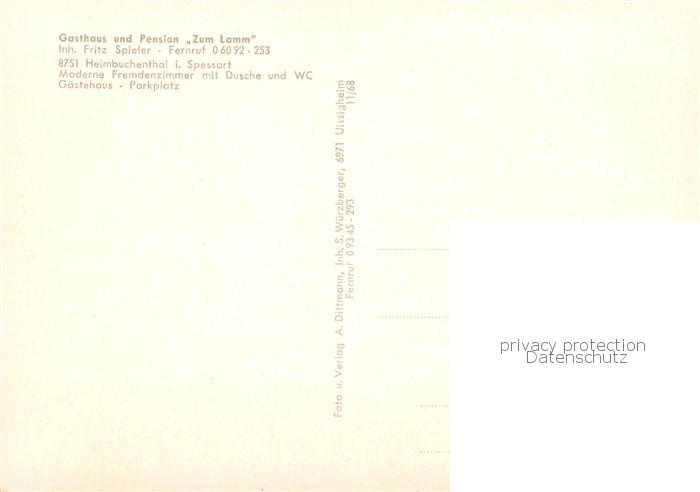 73855037 Heimbuchenthal Gasthaus Pension Zum Lamm Gastraum Ortsansicht mit Kirche postalisch nicht gelaufen Erhaltung siehe scans [FriedD77] KatCode: 11110009671127