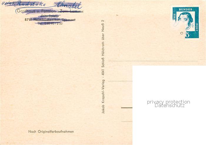 73792993 Heimbuchenthal Gasthaus-Pension Zum Lamm postalisch nicht gelaufen Erhaltung siehe scans [LiesaD40] KatCode: 11110009671127