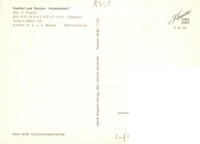 73872089 Heimbuchenthal Gasthof Pension Heimatenhof Fliegeraufnahme postalisch nicht gelaufen Erhaltung siehe scans [FriedD77] KatCode: 11110009671127
