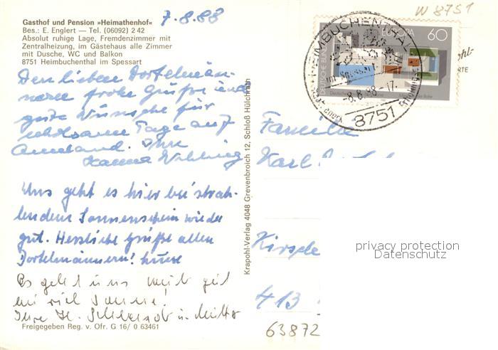 73711272 alte Postkarte Heimbuchenthal Gasthof Pension Heimathenhof Fliegeraufnahme postalisch gelaufen Erhaltung siehe scans [WerneD78] KatCode: 11110009671127