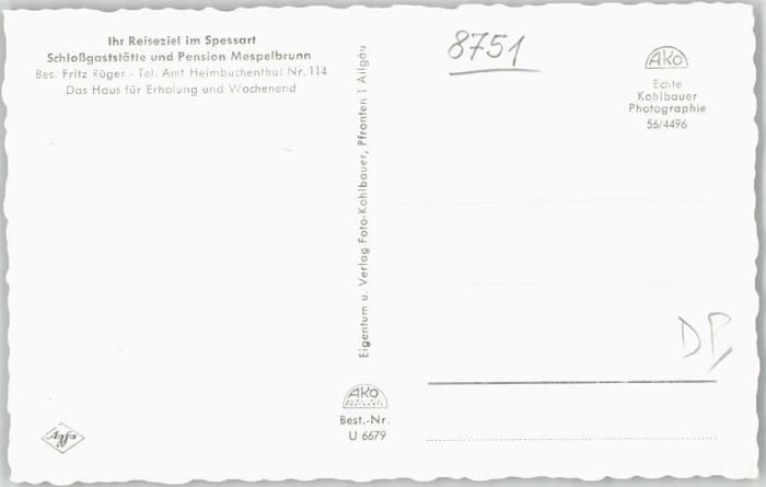 40245347 Heimbuchenthal Gaststaette Pension Mespelbrunn Postalisch nicht gelaufen Alte Ansichtskarte Postkarte Katcode 11110009671127