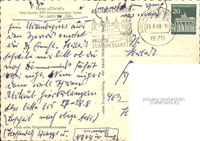 71859863 alte Postkarte Heimbuchenthal Haus Christl postalisch gelaufen Erhaltung siehe scans KatCode: 11110009671127