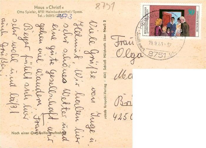 73893273 alte Postkarte Heimbuchenthal Haus Christl postalisch gelaufen Erhaltung siehe scans [WerneD78] KatCode: 11110009671127