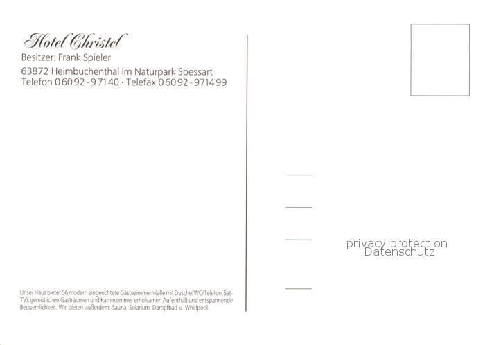 72989582 Heimbuchenthal Hotel Christel Wallfahrtskirche Wertheim Schloss Johannisburg Miltenberg Schloss Lohr postalisch nicht gelaufen Erhaltung siehe scans [WerneD78] KatCode: 11110009671127