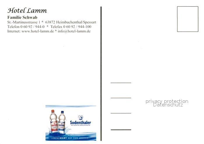 73543123 Heimbuchenthal Hotel Lamm Sehenswuerdigkeiten der Region Werbung Sodenthaler Mineralwasser postalisch nicht gelaufen Erhaltung siehe scans [FriedD77] KatCode: 11110009671127