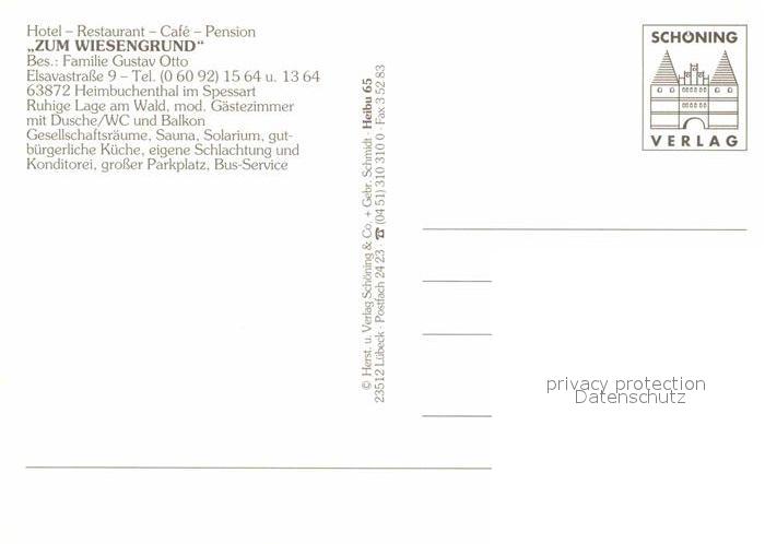72769573 Heimbuchenthal Hotel Restaurant Zum Wiesengrund postalisch nicht gelaufen Erhaltung siehe scans [LiesaD40] KatCode: 11110009671127