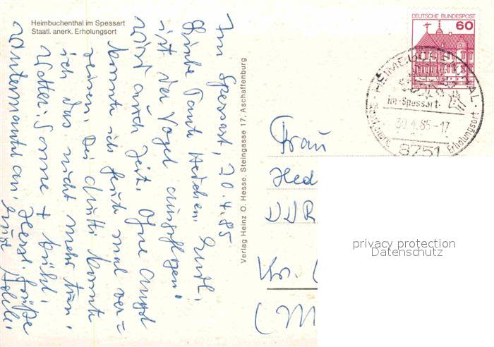 72891794 alte Postkarte Heimbuchenthal im Spessart postalisch gelaufen Erhaltung siehe scans [LiesaD40] KatCode: 11110009671127