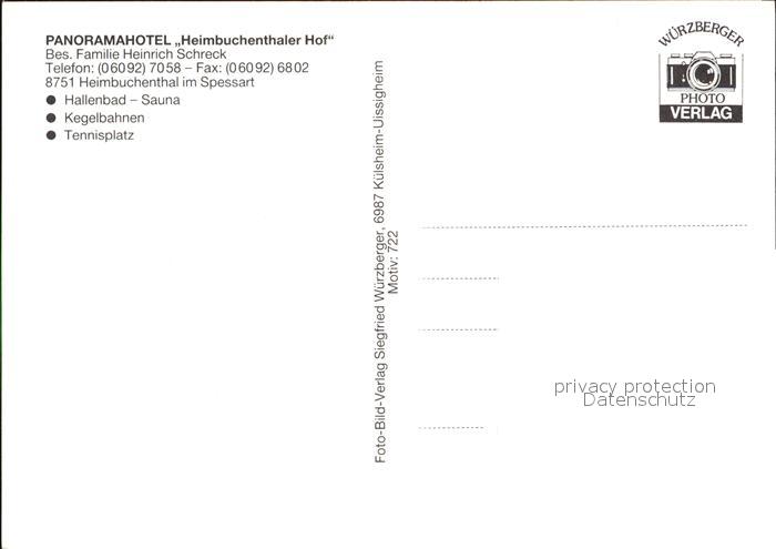 72492327 Heimbuchenthal Panoramahotel Heimbuchenthaler Hof postalisch nicht gelaufen Erhaltung siehe scans KatCode: 11110009671127