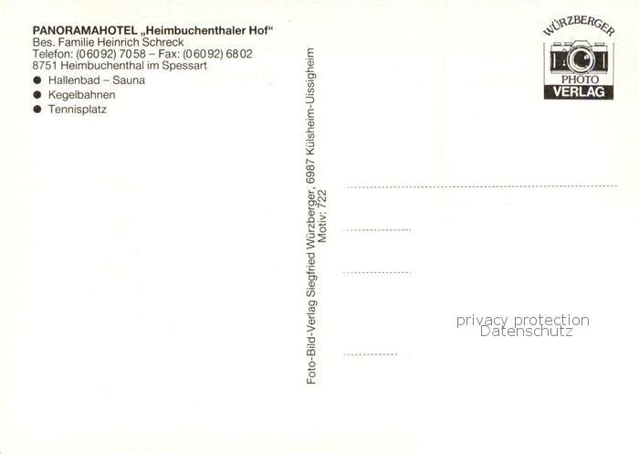 73768662 alte Postkarte Heimbuchenthal Panoramahotel Heimbuchenthaler Hof Gaststube Tennisplatz Hallenbad postalisch gelaufen Erhaltung siehe scans [WerneD78] KatCode: 11110009671127