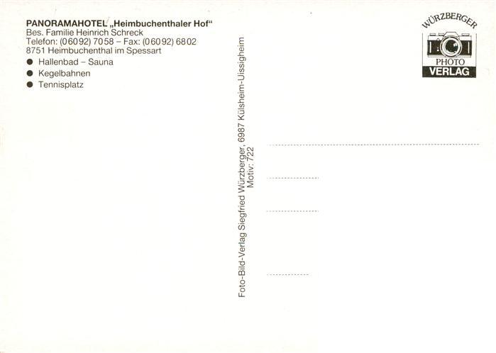 73881551 Heimbuchenthal Panoramahotel Heimbuchenthaler Hof Gaststube Tennisplatz Hallenbad postalisch nicht gelaufen Erhaltung siehe scans [WerneD78] KatCode: 11110009671127