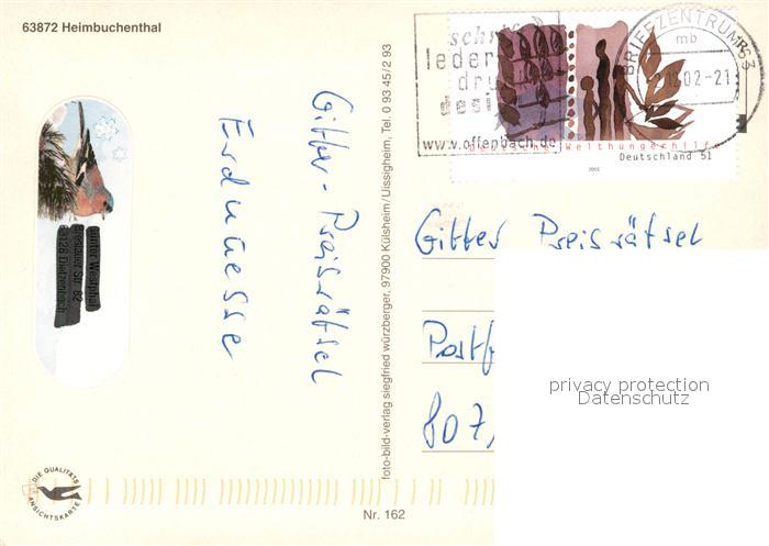 73200759 alte Postkarte Heimbuchenthal postalisch gelaufen Erhaltung siehe scans [NatalD47] KatCode: 11110009671127