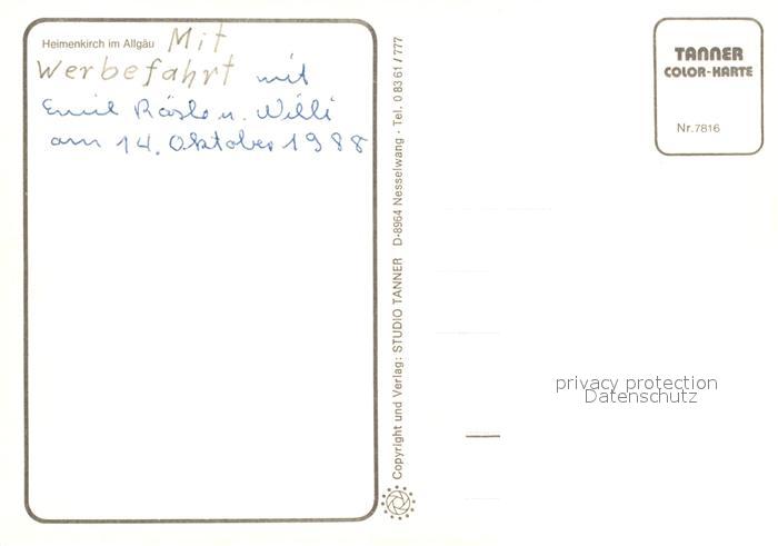 73107222 Heimenkirch Fliegeraufnahme Alpen postalisch nicht gelaufen Erhaltung siehe scans [KathaD81] KatCode: 11110009776114