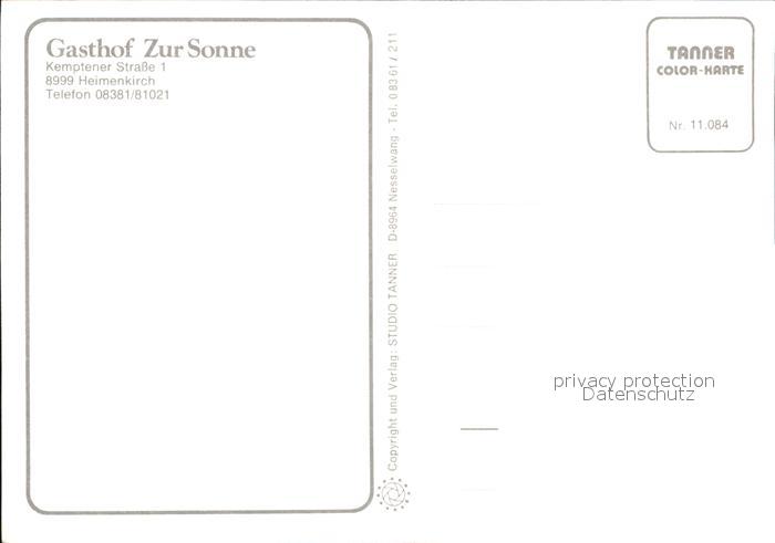 72609734 Heimenkirch Gasthof Zur Sonne postalisch nicht gelaufen Erhaltung siehe scans [LiesaD40] KatCode: 11110009776114