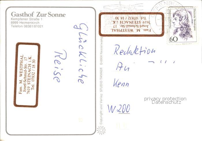 72045618 alte Postkarte Heimenkirch Gasthof Zur Sonne postalisch gelaufen Erhaltung siehe scans KatCode: 11110009776114