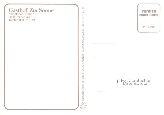 73843593 Heimenkirch Gasthof Zur Sonne Festsaal Gastraeume postalisch nicht gelaufen Erhaltung siehe scans [WerneD78] KatCode: 11110009776114