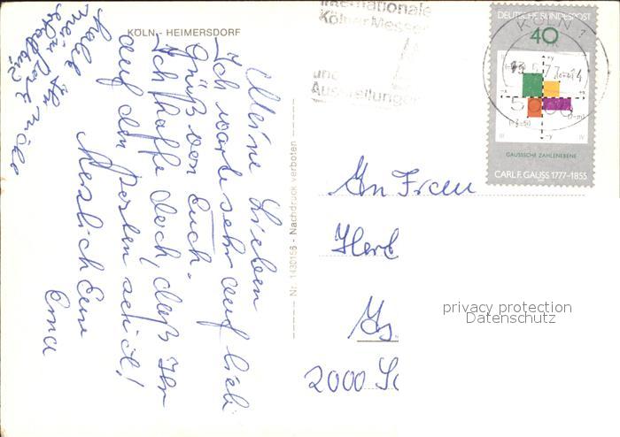 72046305 alte Postkarte Heimersdorf Koeln postalisch gelaufen Erhaltung siehe scans KatCode: 11110005315000