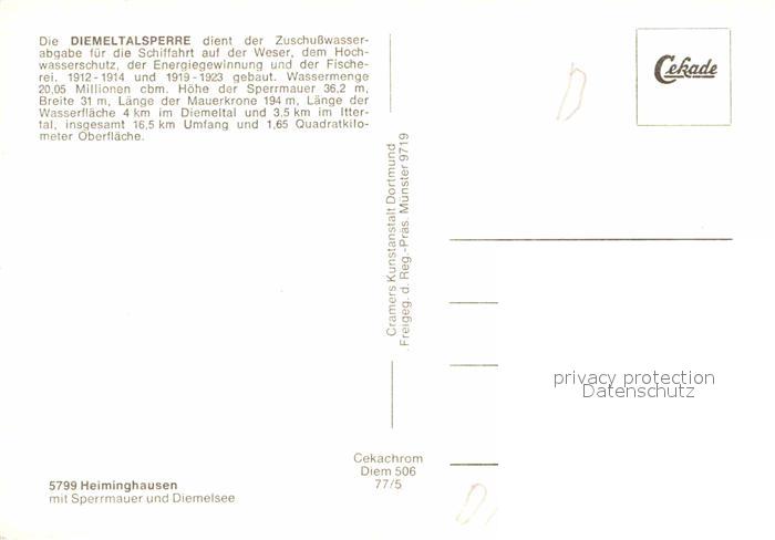 72792031 Heiminghausen Sperrmauer Diemelsee postalisch nicht gelaufen Erhaltung siehe scans [NatalD47] KatCode: 11110005958040