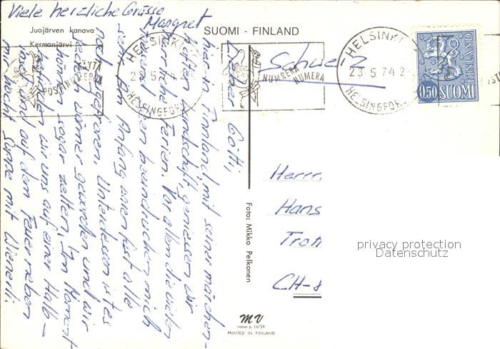 old postcard Heinaevesi Kermanjaervi postalisch gelaufen Erhaltung siehe scans