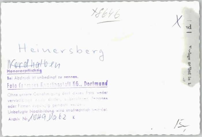 40238595 Heinersberg postalisch nicht gelaufen KatCode: