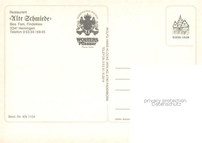 73662256 Heiningen Wolfenbuettel Klosterhaehnchen Restaurant Alte Schmiede postalisch nicht gelaufen Erhaltung siehe scans [FriedD77] KatCode: 11110003158019