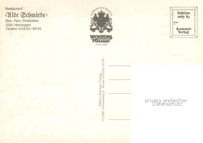 73722259 Heiningen Wolfenbuettel Klosterhaehnchen Restaurant Alte Schmiede postalisch nicht gelaufen Erhaltung siehe scans [LiesaD40] KatCode: 11110003158019