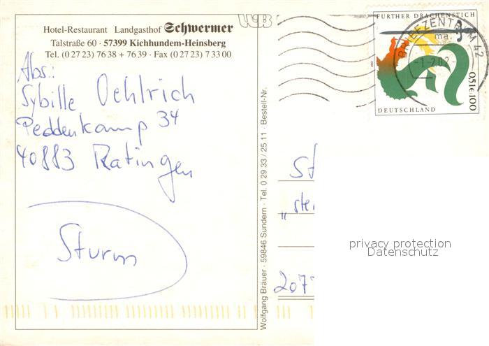 73655439 alte Postkarte Heinsberg Westfalen Hotel Restaurant Landgasthof Schwermer Gaststube Terrasse postalisch gelaufen Erhaltung siehe scans [WerneD78] KatCode: 11110005966016