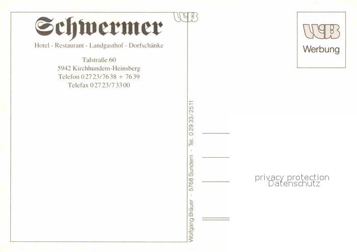 72828714 Heinsberg Westfalen Hotel Schwermer postalisch nicht gelaufen Erhaltung siehe scans [NatalD47] KatCode: 11110005966016
