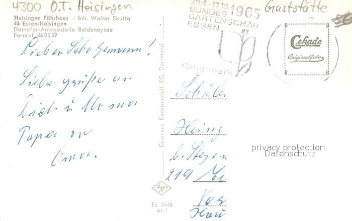 73692850 alte Postkarte Heisingen Gaststaette Heisinger Faehre Dampfer Anlegestelle Baldeneysee postalisch gelaufen Erhaltung siehe scans [FriedD77] KatCode: 11110005113000