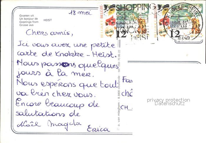72361360 carte postale Heist-Knokke Strand Segelboot postalisch gelaufen Erhaltung siehe scans KatCode: 11070031000330