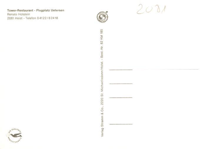73874324 Heist Schleswig Tower-Restaurant Flugplatz Uetersen postalisch nicht gelaufen Erhaltung siehe scans [FriedD77] KatCode: 11110001056024