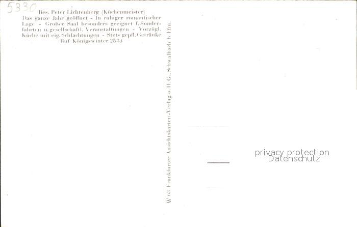 31722005 Heisterbacherrott Gasthaus Pension zum Siebengebirge Peter Lichtenberg postalisch nicht gelaufen Erhaltung siehe scans KatCode: 11110005382024