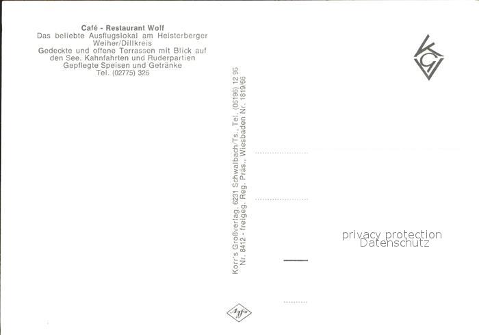 72098852 Heisterberg Dillkreis Heisterberger Weiher Cafe Restaurant Wolf Bar Gastraum postalisch nicht gelaufen Erhaltung siehe scans KatCode: 11110006532007