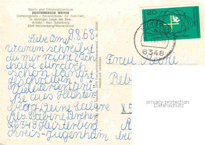72895090 alte Postkarte Heisterberg Dillkreis Heisterberger Weiher Campingplatz Ferienhaeuser postalisch gelaufen Erhaltung siehe scans [KathaD81] KatCode: 11110006532007