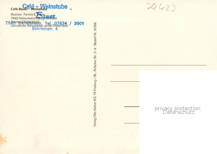 73864013 Heitersheim Cafe Bauer Weinstube postalisch nicht gelaufen Erhaltung siehe scans [WerneD78] KatCode: 11110008315050