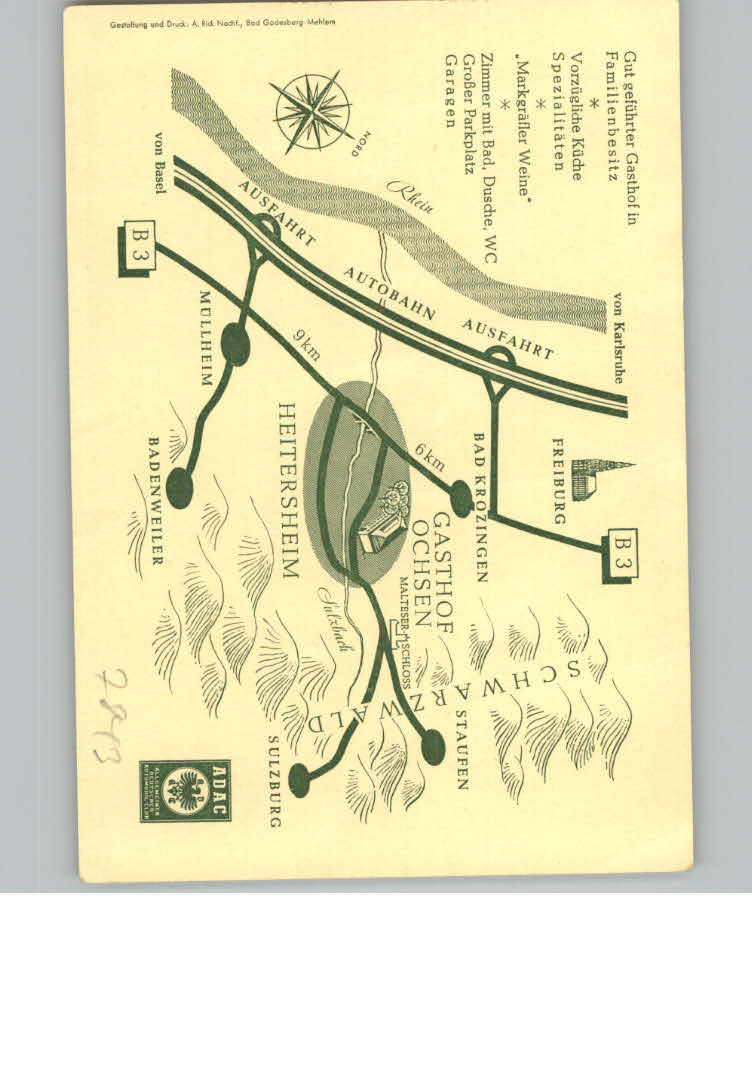 Heitersheim Werbe-Karte Gasthof Ochsen