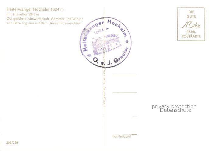 73796600 alte Postkarte Heiterwang Heiterwanger Hochalm mit Thaneller postalisch gelaufen Erhaltung siehe scans [WerneD78] KatCode: 11390331070814